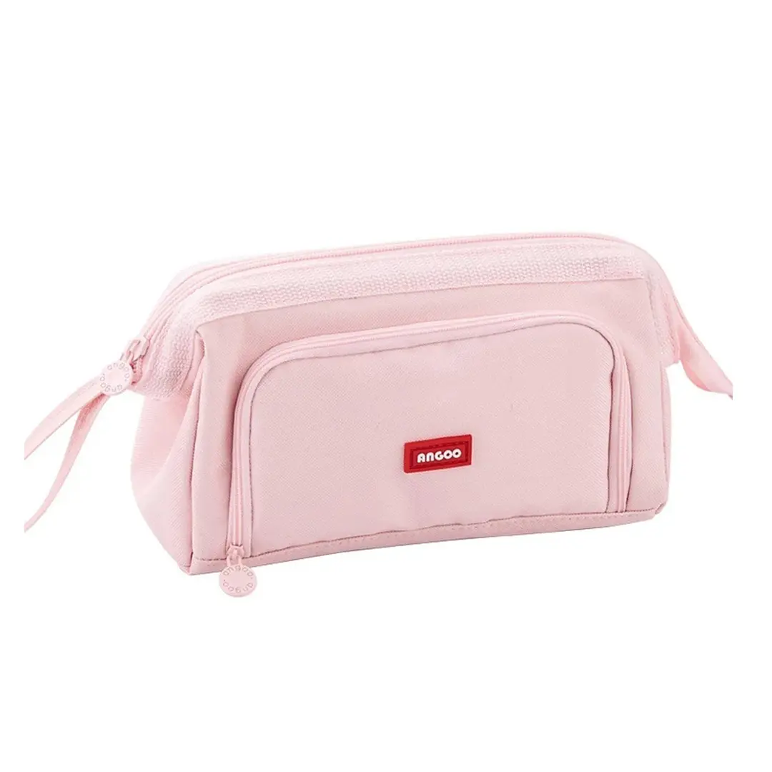 Cartuchera escolar multiuso diseñada para organizar útiles de manera práctica y funcional. Cuenta con cierres que facilitan el acceso y permiten separar distintos elementos como lápices, lapiceras, marcadores u otros accesorios. Su tamaño es ideal para el uso diario en la escuela o en el estudio, y su color rosado le aporta un estilo simple y agradable. Una opción versátil para mantener todo ordenado dentro de la mochila.