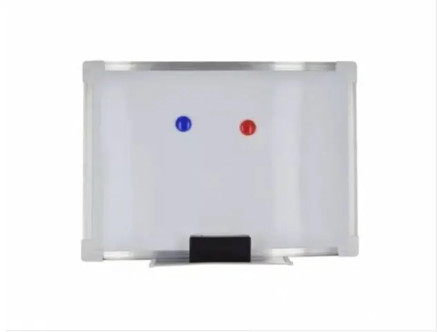 Pizarra blanca con marco de aluminio.Medidas: 30x40cm.Incluye borrador e imanes, ideal para colgar en paredes, en la oficina y en el hogar.